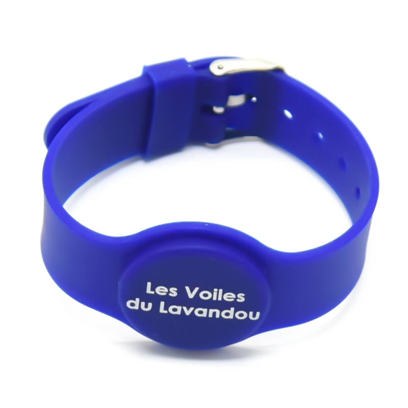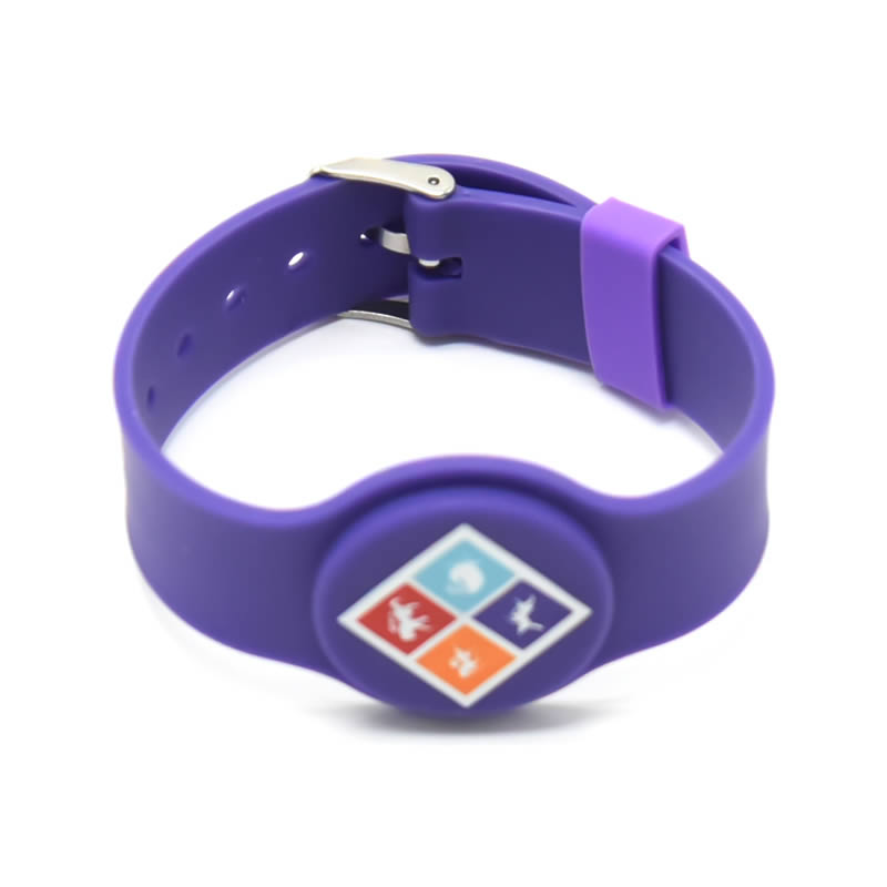 Custom silicone rfid bracelet is a watch type design with adjustable buckle. There are many colors such as red, orange, yellow, green, blue, purple, black, white, etc. Also it support dual colors. It can embed many kinds of chips in it such as LF, HF & UHF rfid chips. The wrist size can be adjusted to suit for all the people.
